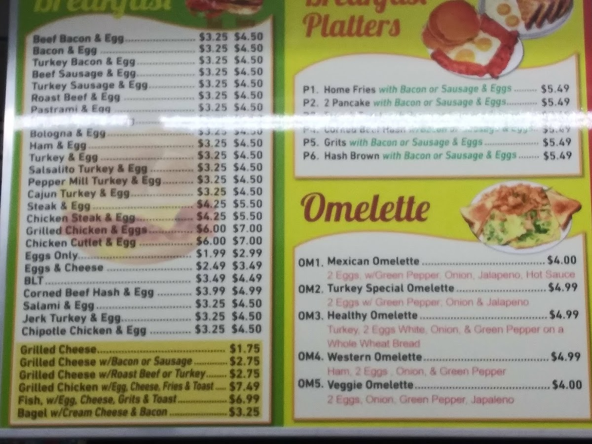 - Specialty Platters: This section includes classic breakfast items such as homefries, corned beef hash, hash browns, grits, waffles, pancakes, and French toast. Each platter is priced consistently, providing a straightforward selection for morning or brunch meals.