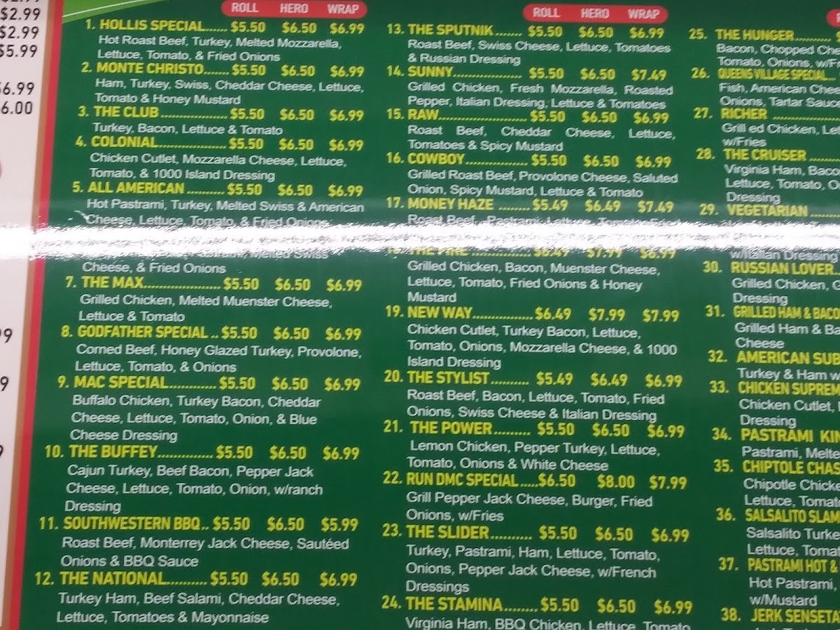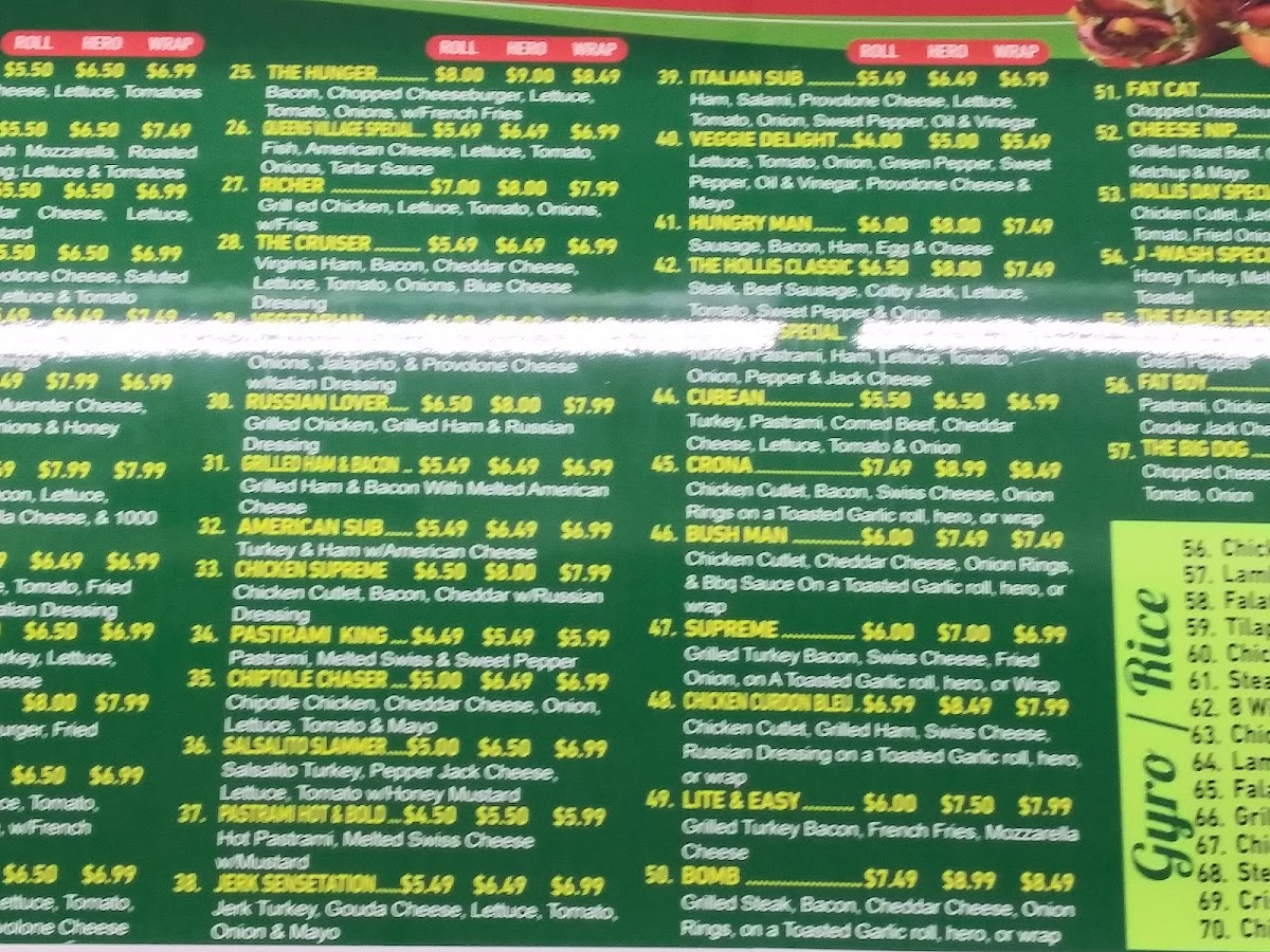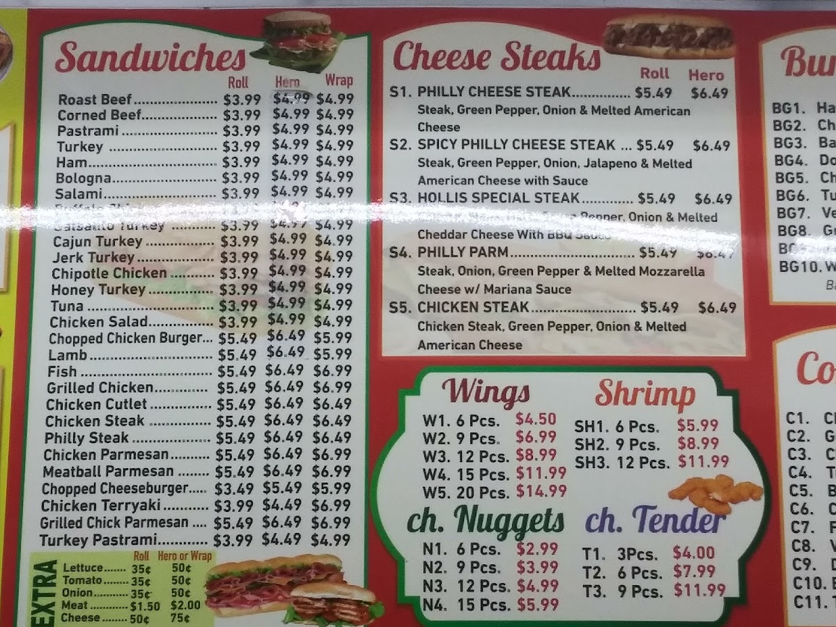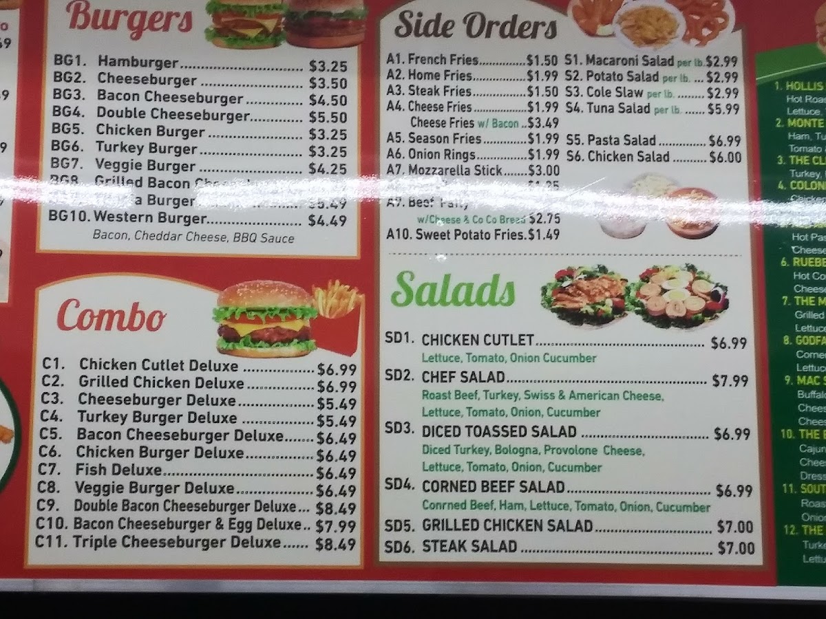 The menu at Hollis Deli and Grill is organized to offer a variety of options suitable for breakfast, lunch, and casual dining throughout the day. It features distinct categories including specialty platters, salads, and beverages.