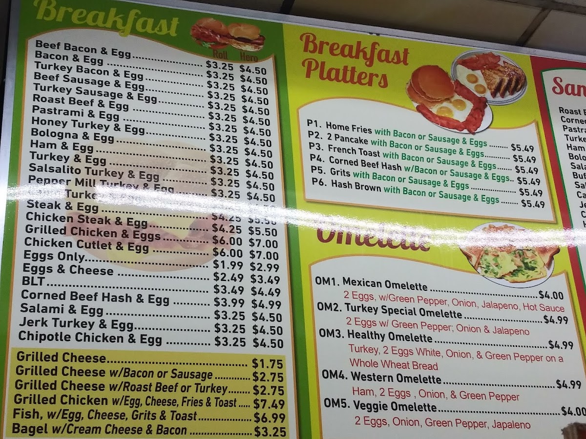 This menu structure supports quick ordering and casual dining experiences, providing both traditional deli and grill items along with beverage choices appropriate for breakfast, lunch, or a light meal. The availability of sandwiches and herb shop products is indicated through customer feedback, complementing the plated and salad options listed.